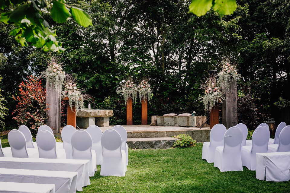 Beim Heiraten auf dem Bauernhof kannst du dich sowohl in unserer kleinen Dorfkapelle als auch direkt auf unserem kleinen Natursteinpodest im Garten trauen lassen. Genieße die harmonische Atmosphäre unseres perfekt gepflegten Bauernhofes, erlebe unseren umfassenden Service und die vielen Möglichkeiten, deine Feier einmalig zu gestalten. Wie auch immer deine Hochzeit im Freien aussehen soll – unsere oberste Priorität ist, deine Wünsche zufriedenzustellen. Wir helfen dir in allen Punkten der Planung. Das bedeutet, wir vermitteln auf Wunsch:
